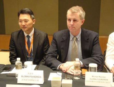 GLOBALFOUNDRIES大中華區(qū)銷售副總裁陳若中(左)與全球銷售和市場(chǎng)營(yíng)銷執(zhí)行副總裁Michael Noonen(右)答記者問