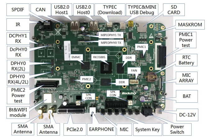 圖:RK3588 EVB 功能接口正面分布圖