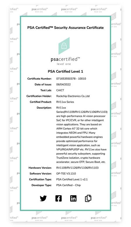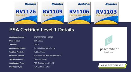 1. 瑞芯微RV11xx系列芯片通過Arm PSA Certified安全認(rèn)證