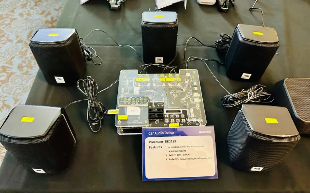 此外,瑞芯微車載智能音頻處理器憑借其高效的MCU+DSP架構(gòu)和引領(lǐng)潮流的內(nèi)置音頻NPU,贏得了眾多汽車主機廠及獨立功放廠商的高度認可,目前正式定點項目已超過20個,且有車型已正式量產(chǎn)。流媒體技術(shù)展區(qū)重點展示搭載旗艦芯片RK3588及RK3576的8K及AI電視盒子,支持全程8K分辨率的視頻解碼,強大核心性能,影視效果流暢清晰。AI電視盒子集成了自研視頻增強類算法包括AI-SR超分技術(shù)及AI-MEMC運動補償以及音頻類算法,動態(tài)展示了芯片綜合性能。