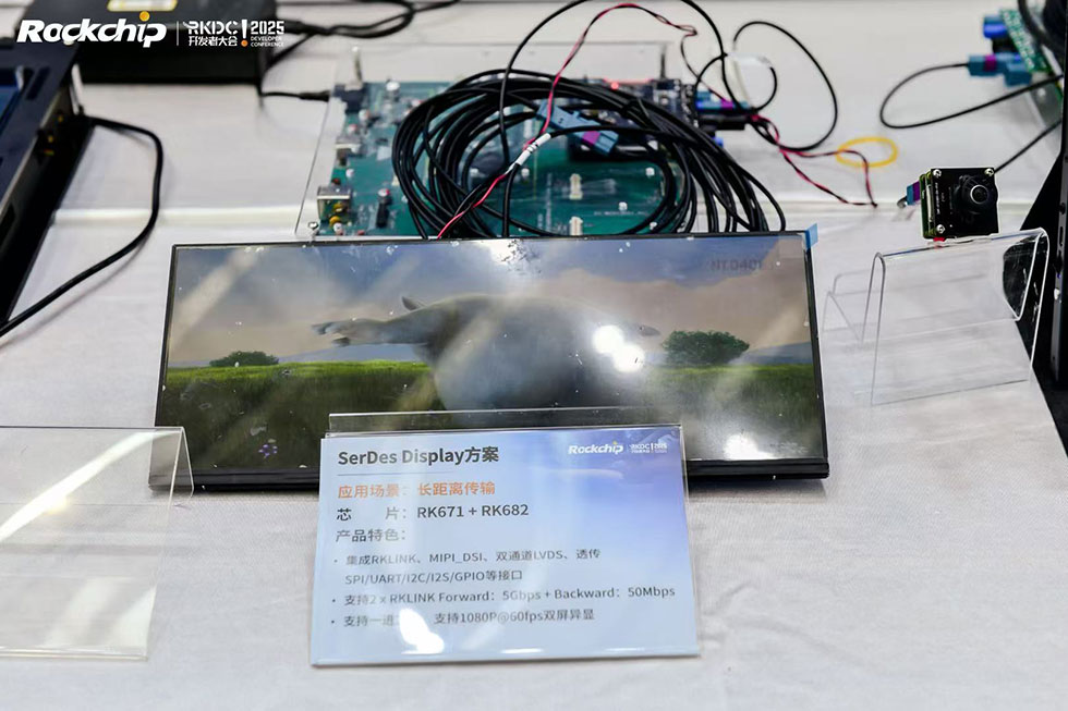 隨著汽車智能化發(fā)展加速,車載攝像頭和顯示屏數(shù)量激增,傳統(tǒng)傳輸方案已難以滿足高帶寬、長(zhǎng)距離的傳輸需求。瑞芯微推出多款接口芯片,包括單攝2M60fps的攝像頭串行器RK671M和雙1080P 60fps屏異顯輸入的屏幕串行器RK681M,以及支持雙攝雙屏的解串器RK682M。