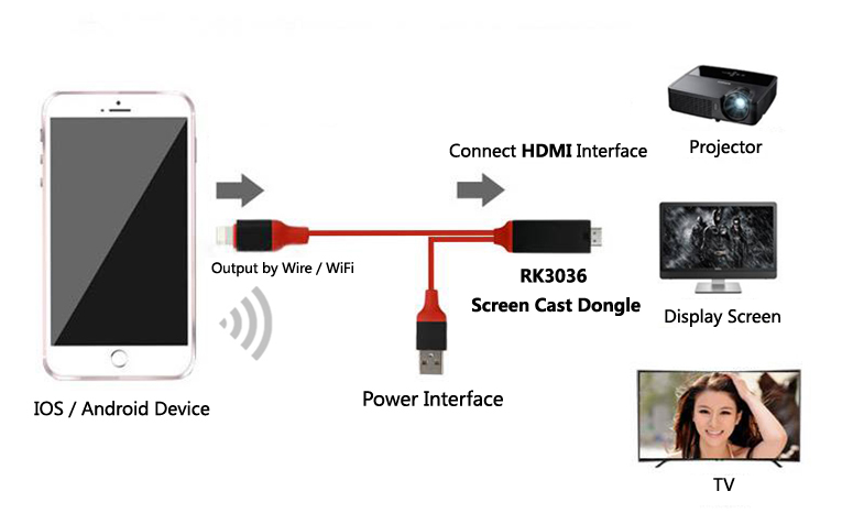 Rockchip officially announced its multi-screen interactive chip RK3036 today, which can provide a complete solution for TV screen cast dongle, first support H.265 video decoding and accelerate the upgrades of consumer level intelligent hardware. TV display dongle based on RK3036 can help users to transfer video, games, and even the screen content from mobile phone/tablet PC to the TV screen, allowing users to watch HD video on the TV and play games on big screen. TV display dongle becomes a mainstream application in business, entertainment and industry fields for its efficient and convenient advantages.