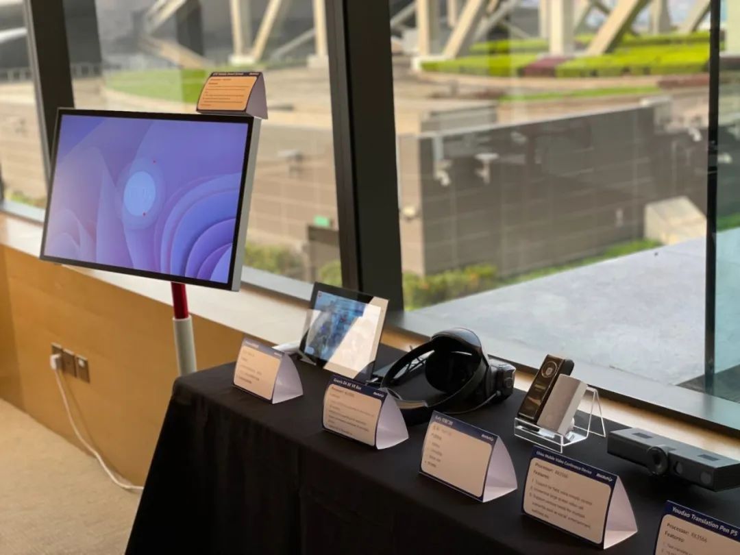 In the consumer electronics exhibition area, Rockchip's applications in smart office, smart education, and smart home are displayedthe Tablet embedded with the newly released AIoT chip RK3562 was on the spot, RK3562 features 4-core A53+G52, built in 1Tops computing power, and has 4K decoding capabilities, which can meet various smart devices; other smart devices such as: ARM PCs, notebooks, conference speakers, dictionary pens, E-learning machine, smart desk lamps, robots, Sweepers, etc. And other emerging consumer electronics also exhibited in the booth: mobile TVs, AR/VR, live-stream machine…